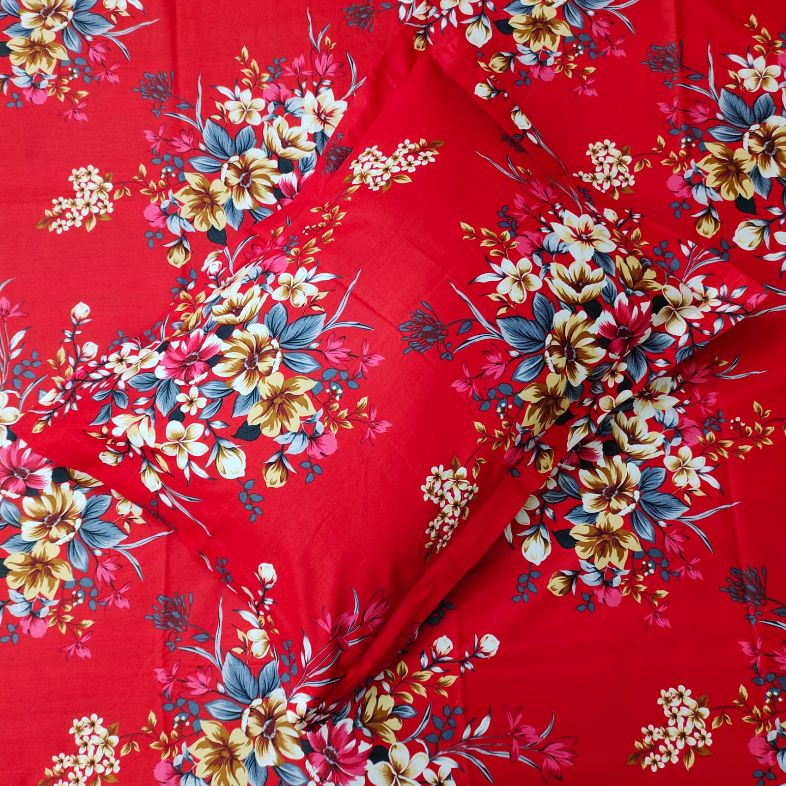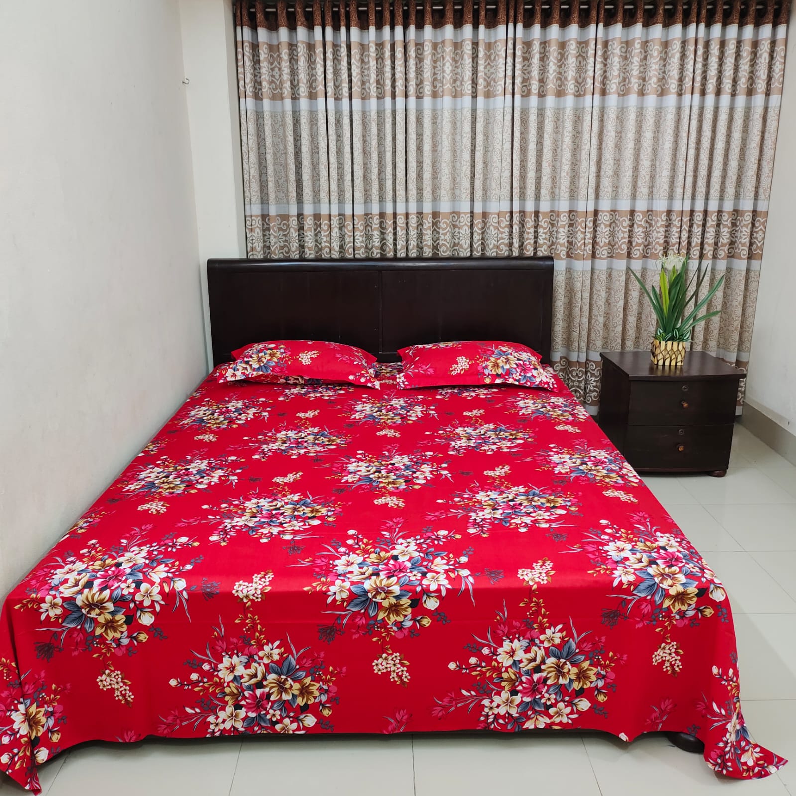 Luxury Twill Cotton Ortha Bedsheet – King Size – 3Pecs – Krishnochura Red