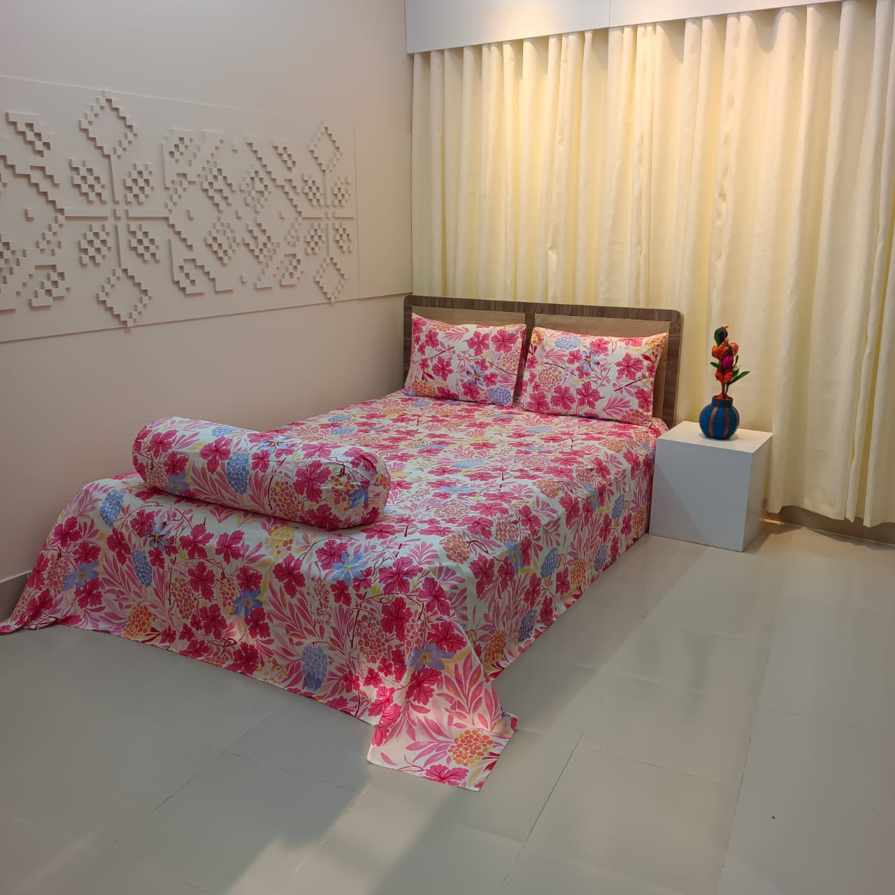 ORTHA EXPORT QUALITY PERCALE COTTON KING SIZE DOUBLE BEDSHEET – 3 PECS SET – PARROT PINK